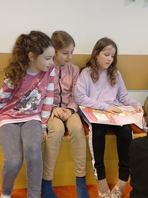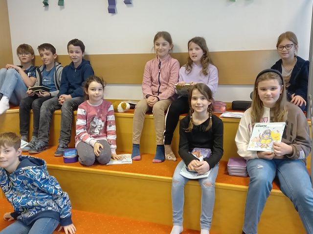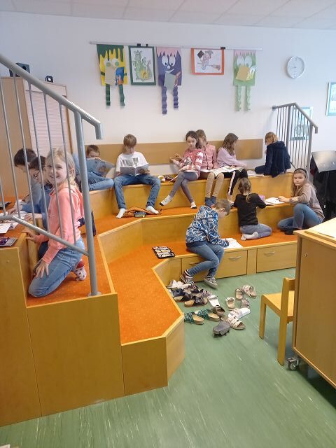 Die Bibliothek wird gerne für diverse lustbetonte Lesestunden mit der Klassenlehrerin genutzt.