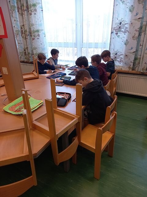 Im Rahmen von Projekten ist unsere Bibliothek ein wichtiger Ort, wo sich die Kinder aus Büchern Informationen beschaffen können.